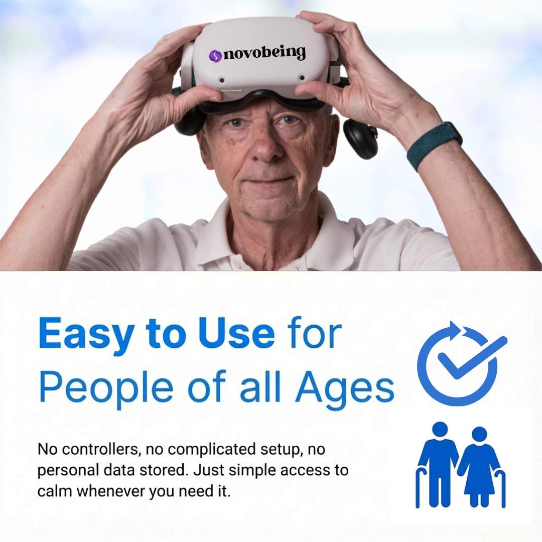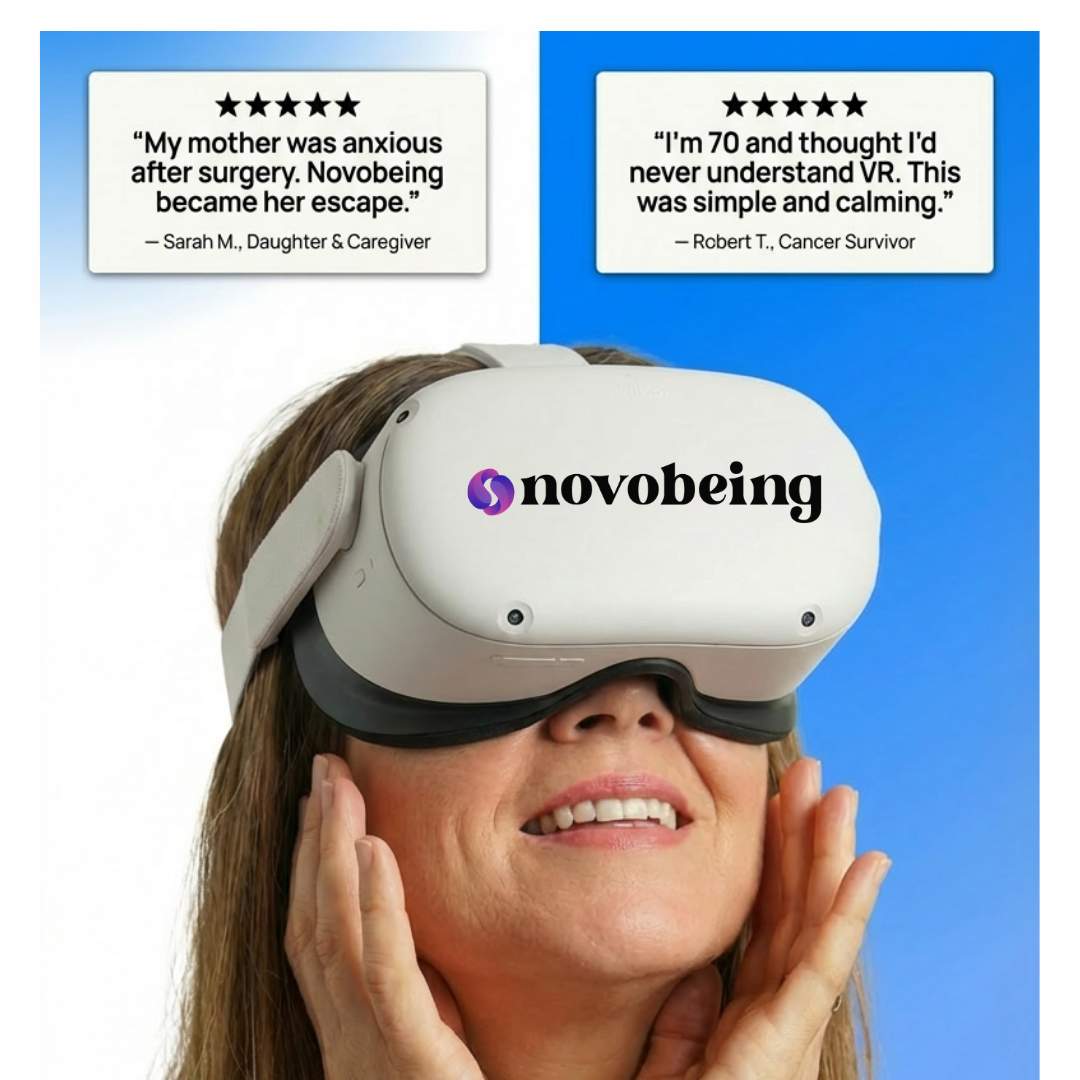 Novobeing is a therapeutic VR headset that helps you feel calmer, more comfortable, and more supported through immersive experiences created with clinicians.